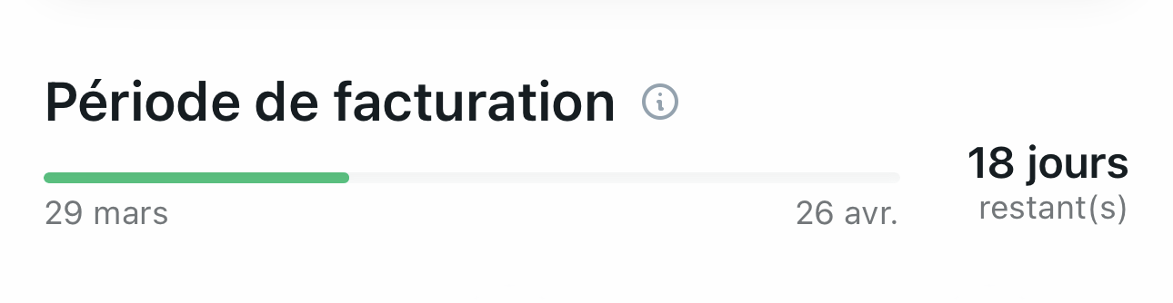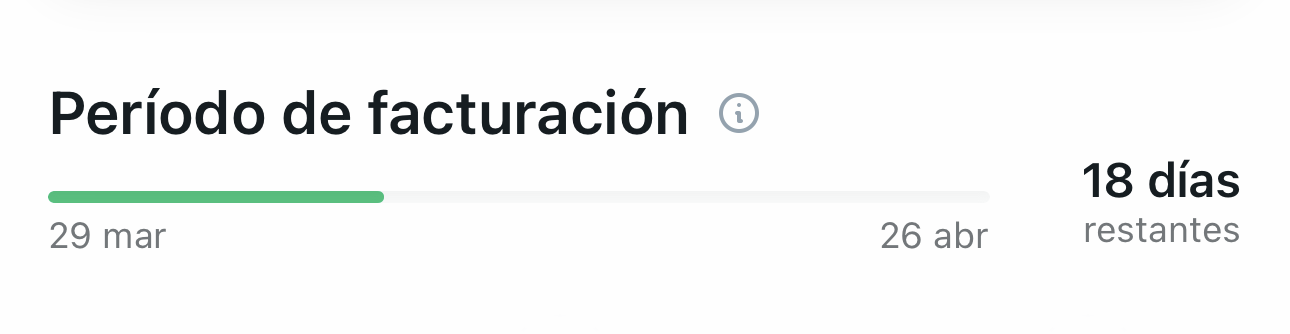 - Período de facturación que muestra el tiempo entre los pagos de la comisión por desempeño, finalizando el último viernes del mes a las 23:50–23:59:59 UTC+0.